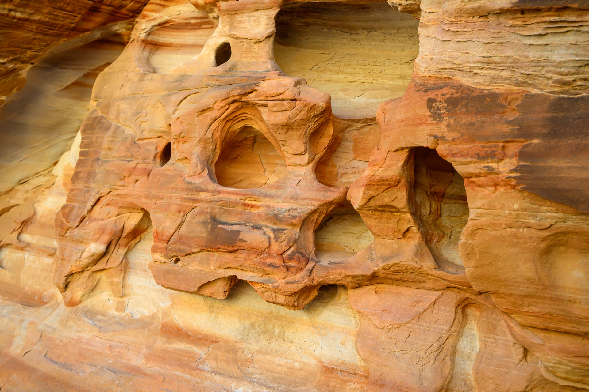 이 사진은 Valley of Fire State Park(네바다 주)에 흔히 볼 수 있는 **사암(Sandstone)**의 전형적인 질감을 아주 잘 보여줍니다.