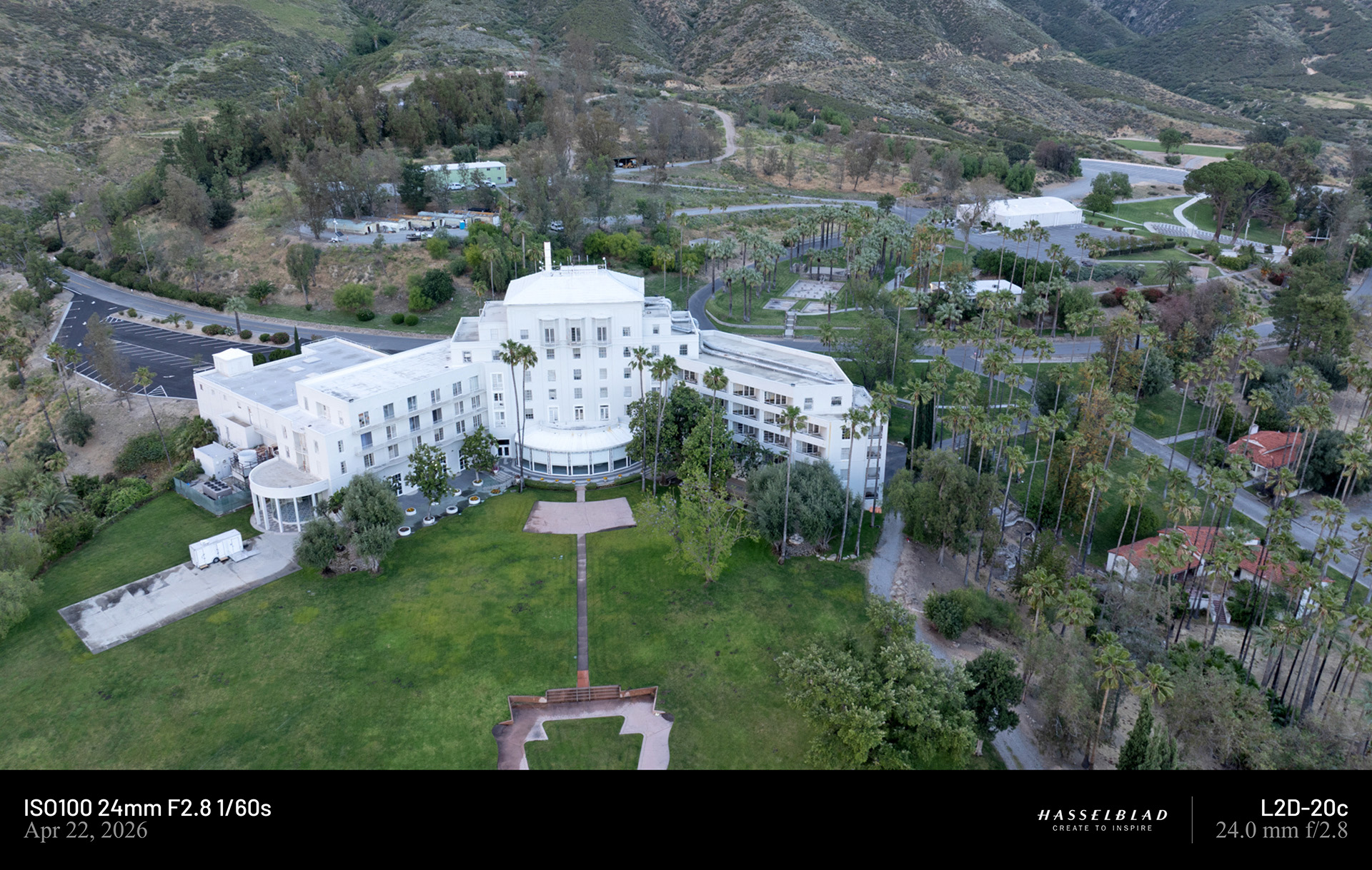 사진 속의 장소는 캘리포니아주 샌버나디노(San Bernardino) 산맥 기슭에 위치한 애로우헤드 스프링스 호텔(Arrowhead Springs Hotel)입니다.