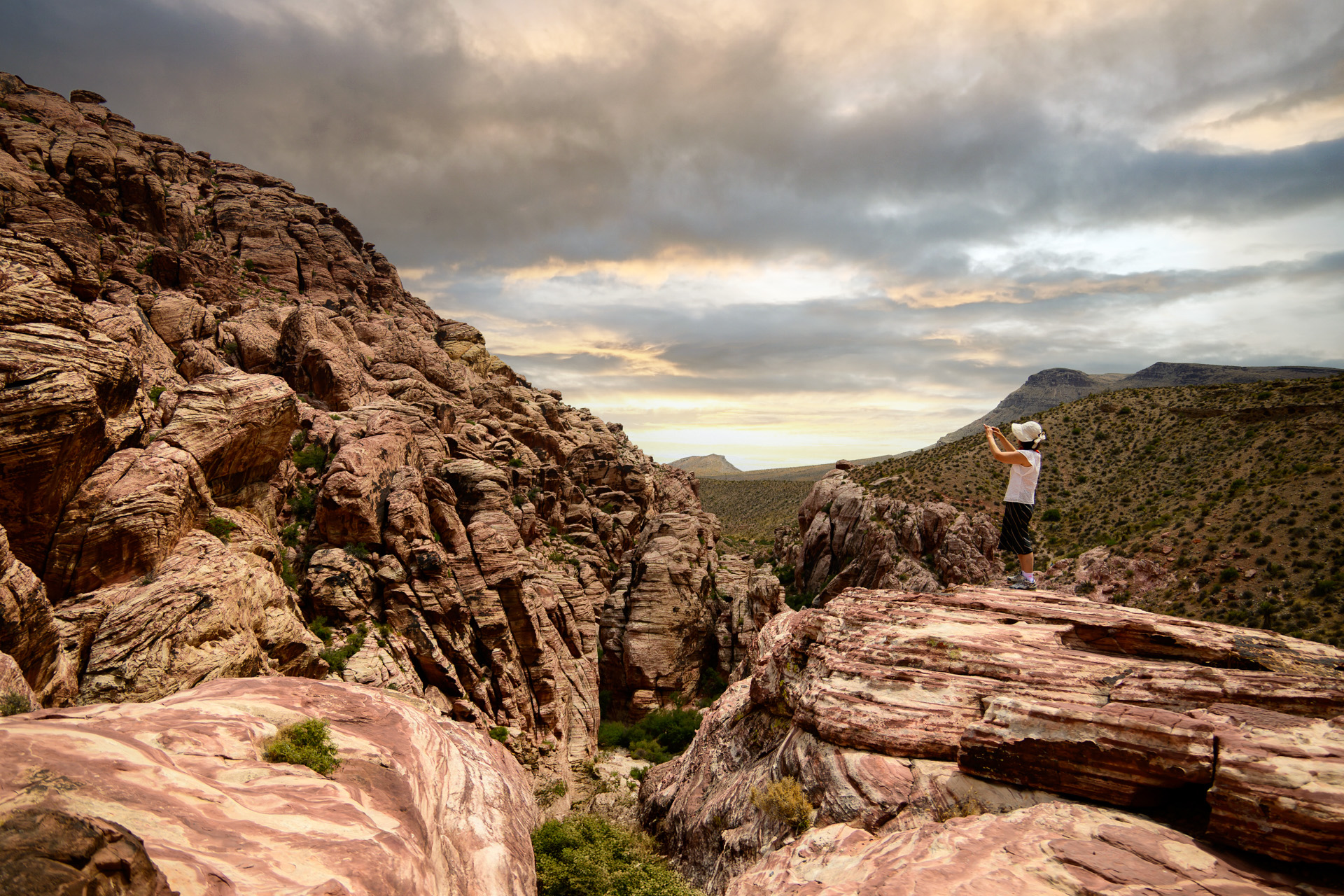 붉은 바위 결 사이로 펼쳐진 풍경을 바라보며,